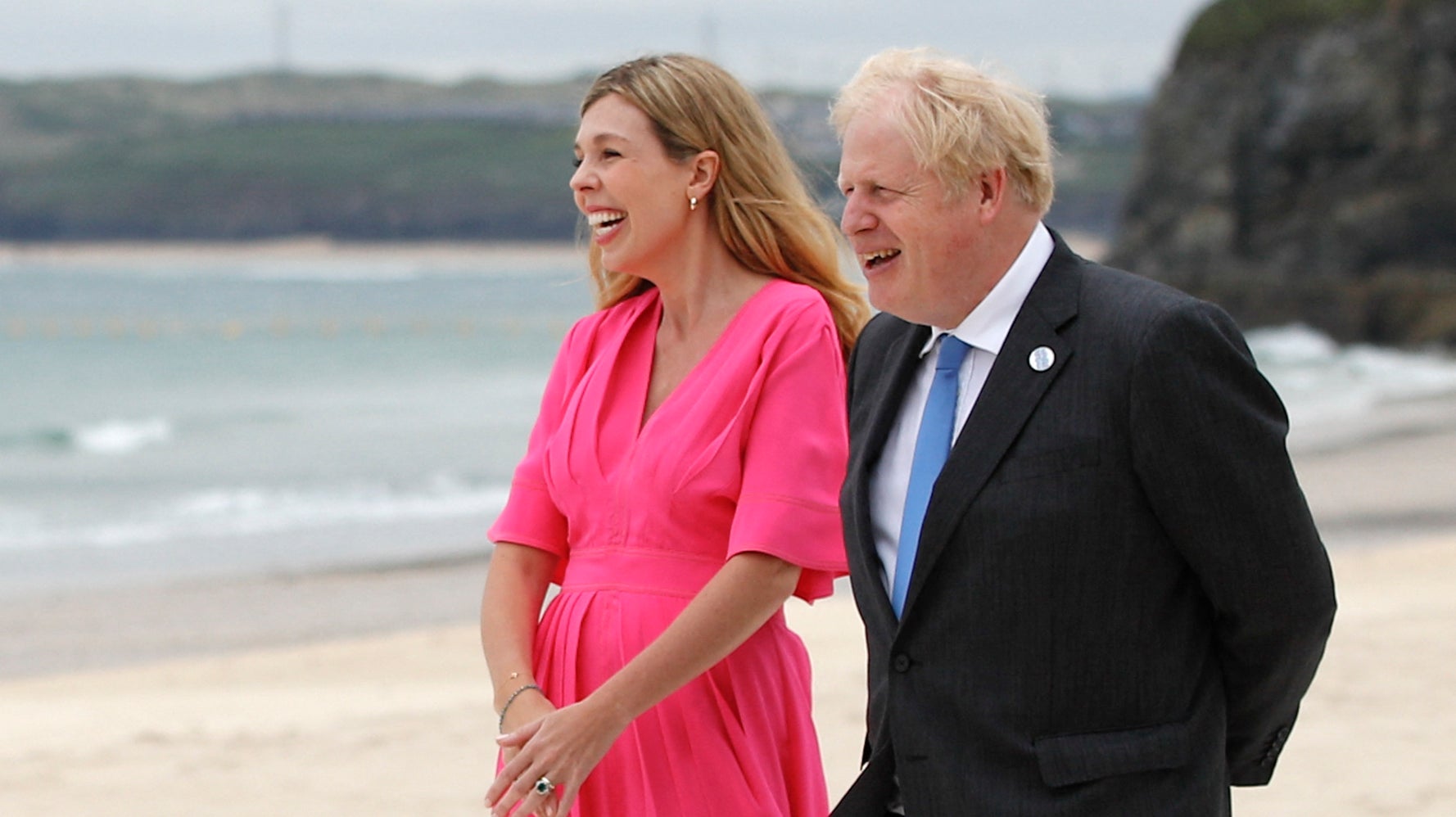Mrs Johnson and Dr Jill Biden dipped their feet in the sea in. The Queen Duchess Kate Prince William Prince Charles and Duchess Camilla reunite in Cornwall for G7 summit. Carrie Johnsons son Wilfred has the most divine mop of curly hair.