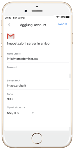 Utilizzi un iPhone o un iPad e vuoi configurare Mail Aruba su questi dispositivi. Utilizza poi i dati di configurazione IMAPPOP3 per Aruba Mail o Aruba PEC e premi su Avanti per terminare la configurazione.