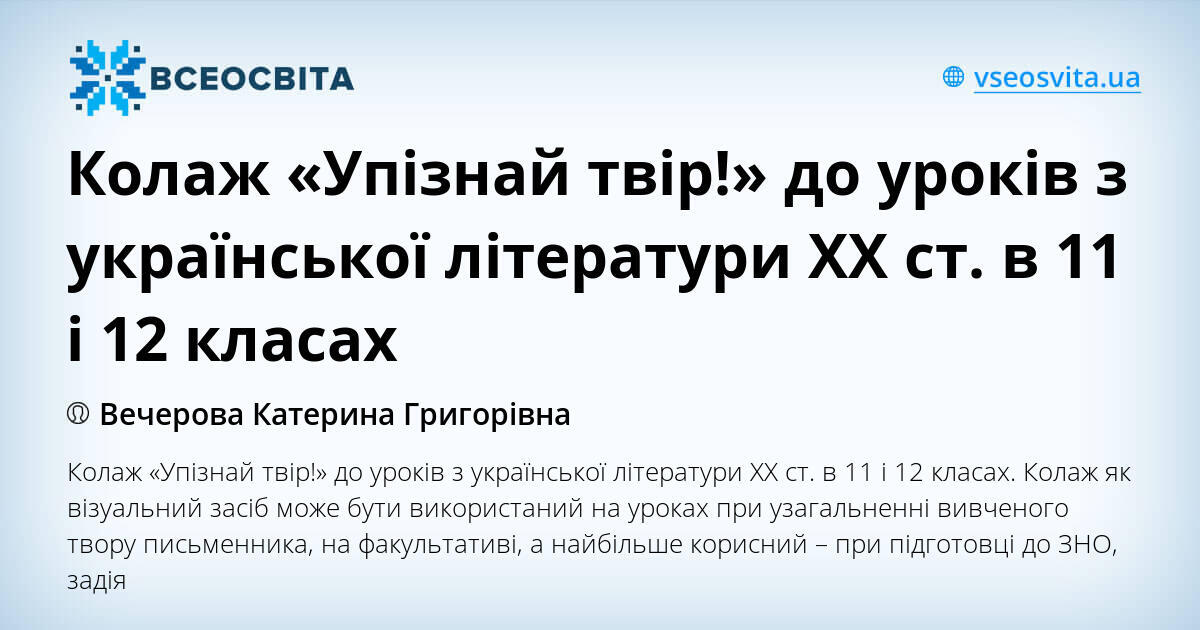 Kolazh Upiznaj Tvir Do Urokiv Z Ukrayinskoyi Literaturi Hh St V 11 I 12 Klasah Inshi Metodichni Materiali Ukrayinska Literatura